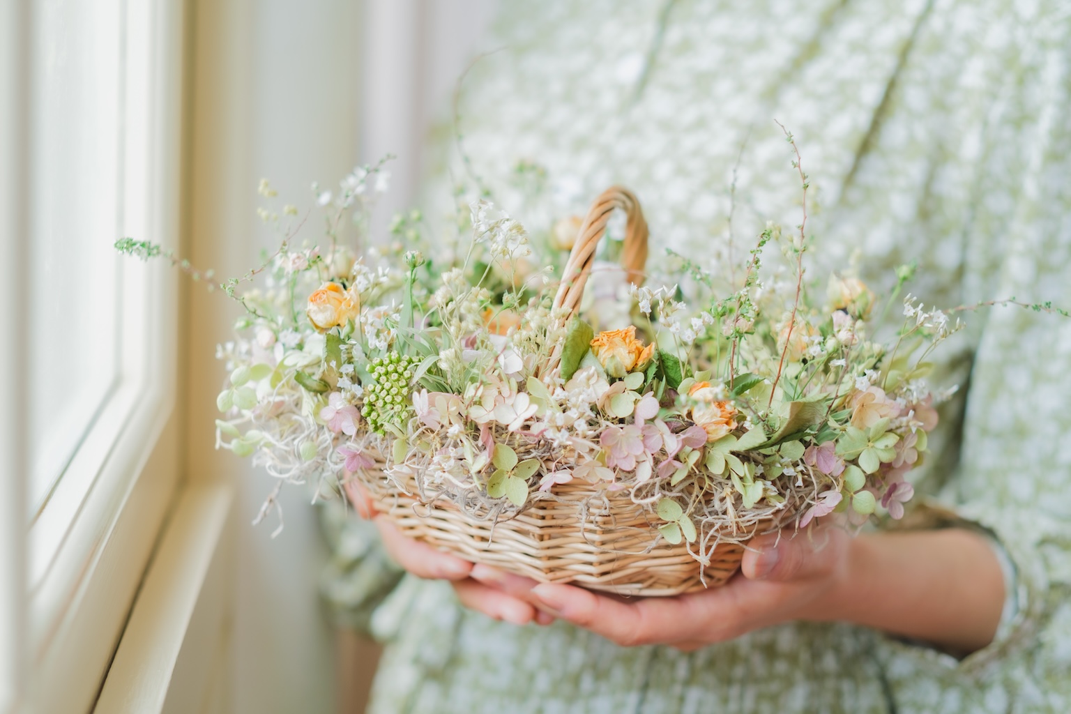 花息吹がご紹介するお花はいつもの毎日に気軽に飾ることのできる小さくて可憐なドライフラワー。気軽に生活の中にお花を取り入れてほしいという思いから、お手入れしやすく、忙しい方にも長くご愛用いただけるドライフラワーの作品を制作しております。